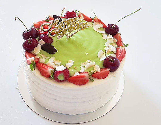 3 layer2 of pandan chiffon sponge | fresh cream and pandan creme patissiere | (fresh fruits topping may be varied )